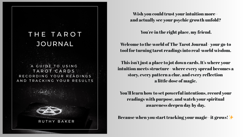 Created by Ruthy Baker, author of Speak Yourself Happy, Tap Yourself Happy, and How to Ask Angels to Light Up Your Path, this journal helps you blend structure with intuition - so your tarot practice becomes both grounded and magical.